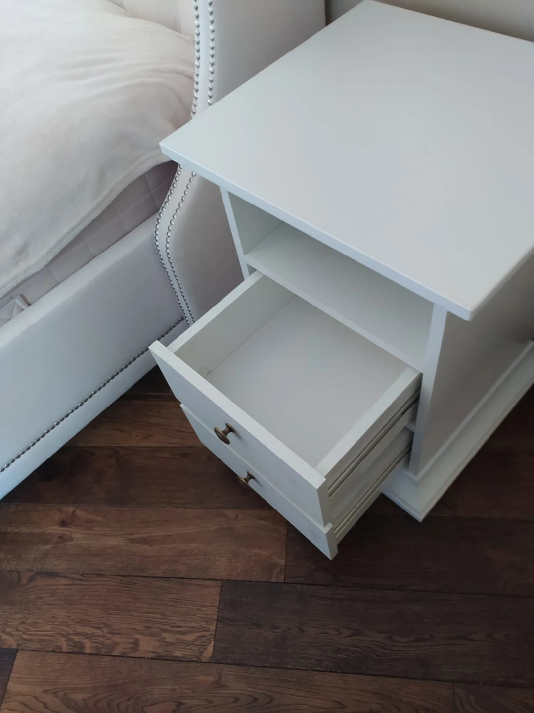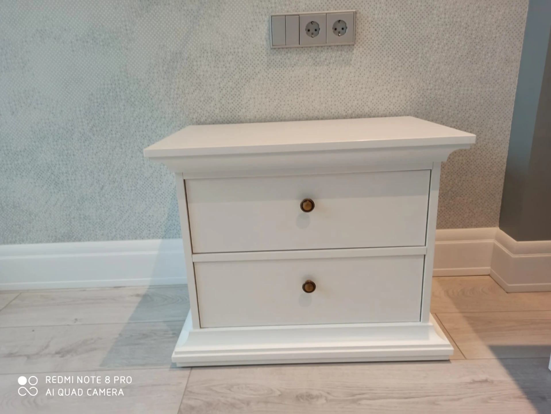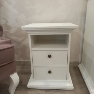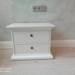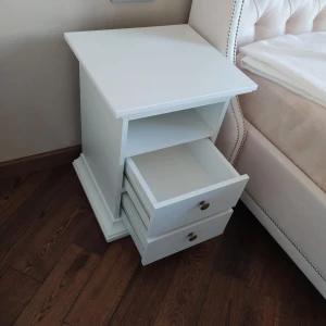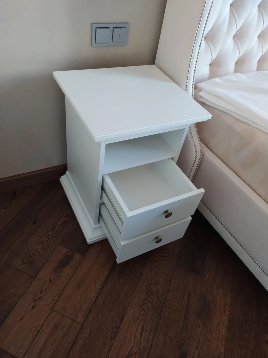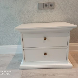 Тумба Reina с полкой и двумя выдвижными ящиками обладает лаконичным дизайном и широкими функциональными возможностями. В ней легко организовать хранение различных вещей, которые удобно иметь под рукой: косметика, парфюмерия, гаджеты, принадлежности для сна, белье. Поверхность подходит для использования в качестве столешницы, на которую можно поставить лампу, зеркало, часы, декор, книгу. Цокольное основание отвечает за устойчивость и надёжность конструкции. Ящики имеют тихий и плавный ход.
