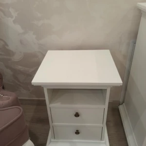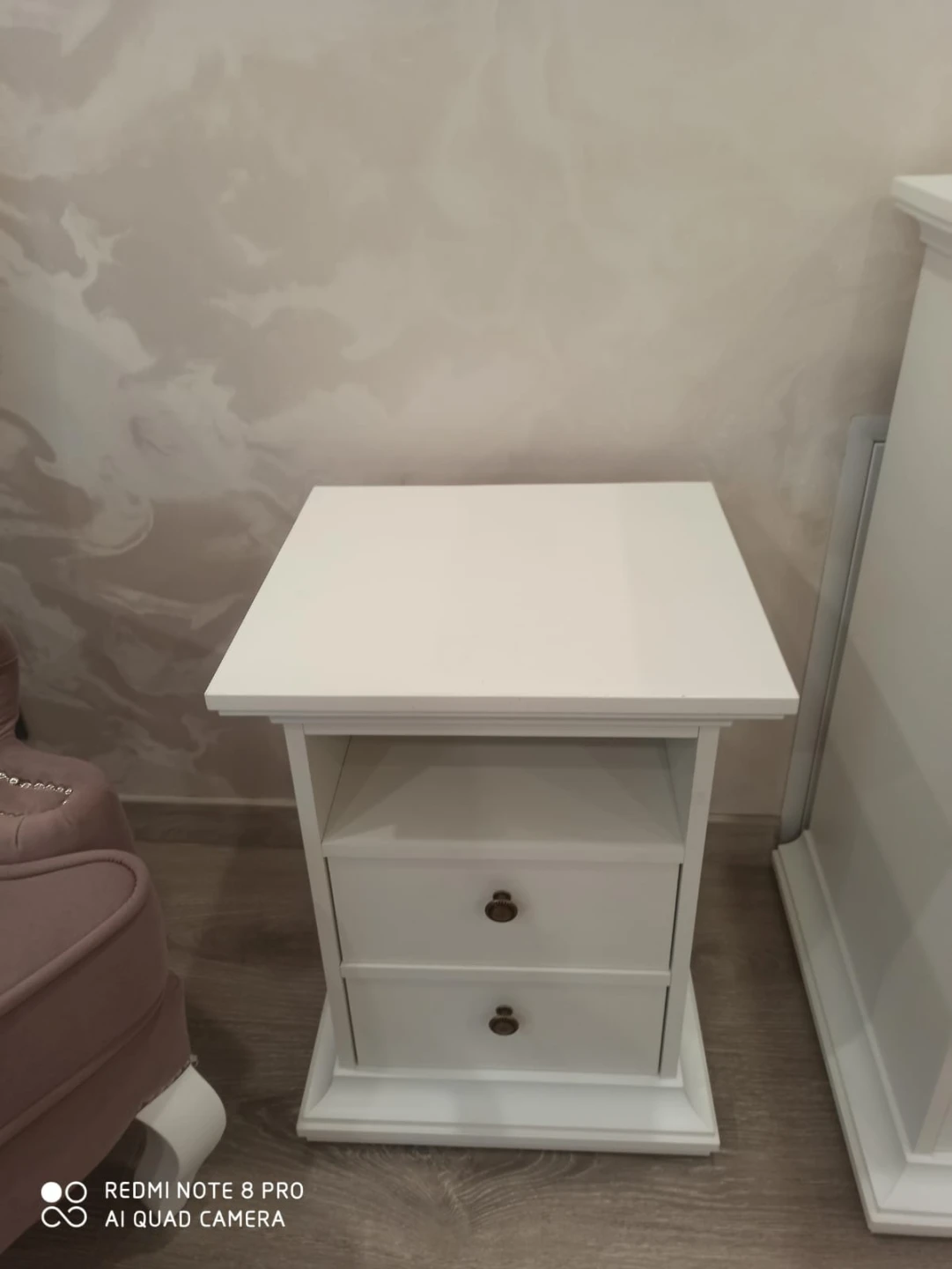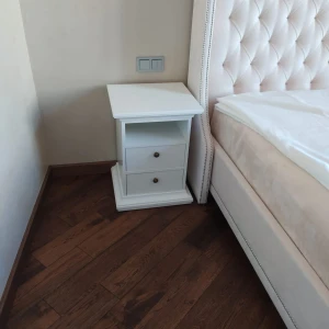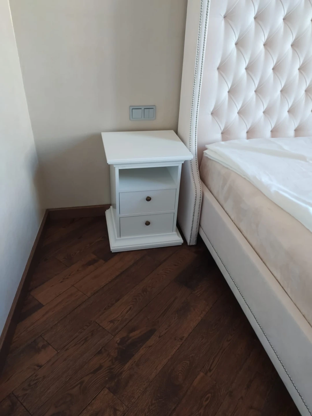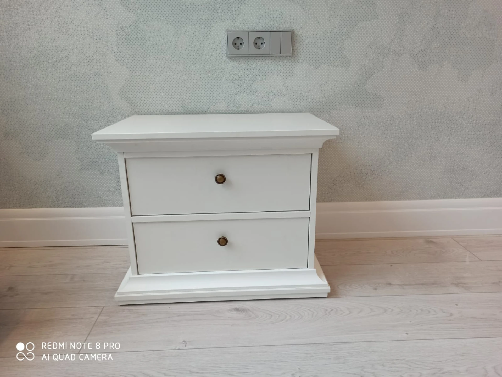 Тумба Reina с полкой и двумя выдвижными ящиками обладает лаконичным дизайном и широкими функциональными возможностями. В ней легко организовать хранение различных вещей, которые удобно иметь под рукой: косметика, парфюмерия, гаджеты, принадлежности для сна, белье. Поверхность подходит для использования в качестве столешницы, на которую можно поставить лампу, зеркало, часы, декор, книгу. Цокольное основание отвечает за устойчивость и надёжность конструкции. Ящики имеют тихий и плавный ход.