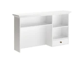 Полочный модуль для установки на крышку стола, либо для навешивания на стену. Имеет выдвижной ящик и полки, уровень которых может регулироваться. При сборке отделение с ящиком может быть установлено слева или справа. Модуль необходимо крепить к стене с помощью прилагаемого стенного крепежа.