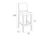 Барный стул Maya изготавливается из полипропилена, упрочненного стекловолокном, полученным с использованием новейшего поколения технологий формования пластмасс под давлением. Барный стул Maya станет отличным выбором для обстановки фуд-кортов, кафе, ресторанов и баров. Благодаря использованию высококачественных материалов они долгое время не теряют своего привлекательного внешнего вида, даже несмотря на активную эксплуатацию. Устойчивость к ультрафиолетовому воздействию и отсутствие металлического каркаса обеспечивают использование пластиковых барных стульев Maya в том числе и на открытых площадках.