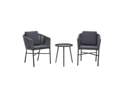 Алюминиевая рама с порошковой окраской, цвет антрацит. Роуп из полиэстра, цвет светло-коричневый , толщина 6mm. Подушка на спинку и сидушку, толщина 4 см, цвет темно-бежевый.
