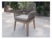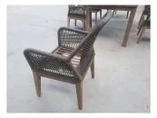 Изготовленная из массива акации, полученного экологически безопасным способом, в сочетании с ручным плетением из роупа, мебель идеально подходит для придания нотки тренда и индивидуальности любому пространству, как в помещении, так и на открытом воздухе. Переплетение веревок на спинке и подлокотниках кресел создает очень гармоничную визуальную игру пересечений и обеспечивает изысканный небанальный эстетический вид.