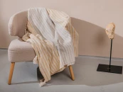 Pietra — оригинальный и функциональный плед из хлопка с кистями по коротким сторонам. Плед подойдёт как для ценителей практичности, которые любят спокойный ненавязчивый фон, так и для экспериментаторов, которым важно реализовать интересные дизайнерские идеи. Так как мягкими тонами, сочетаем серого и приглушенного желтого, выразительной фактурой, геометрическими рисунками можно разнообразить и оживить любой устоявшийся интерьер. Идеально дополнит интерьер спальни или гостиной.