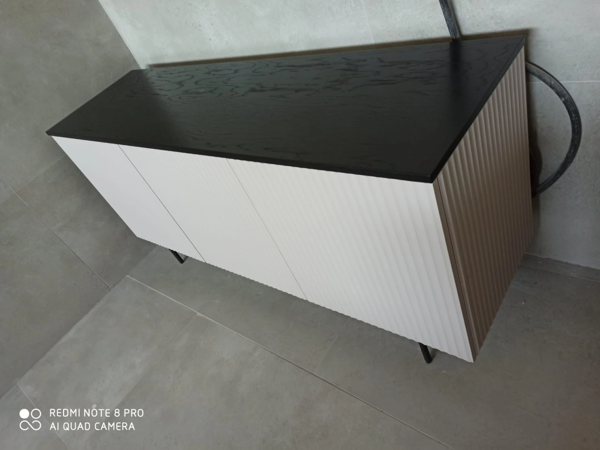 Идея дизайна — баланс индустриального характера и органичных элементов. Мебель сочетает в себе прочное металлическое основание, крышку с дубовым шпоном и рельефный фасад с фрезеровкой. Дверцы и ящики открываются легким нажатием. Отсутствие фурнитуры придает моделям аккуратность и ритмичность. Используйте их для хранения книг, техники в гостиной, одежды и текстиля в спальне, важных мелочей в прихожей, документов и канцелярии в рабочей зоне, декоративных вещей в творческой локации. Можете выбрать цвет крышки: светлый или темный. С мебелью Mikko вы грамотно спрячете лишнее и эстетично экспонируете нужное.