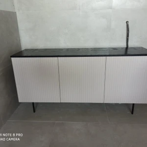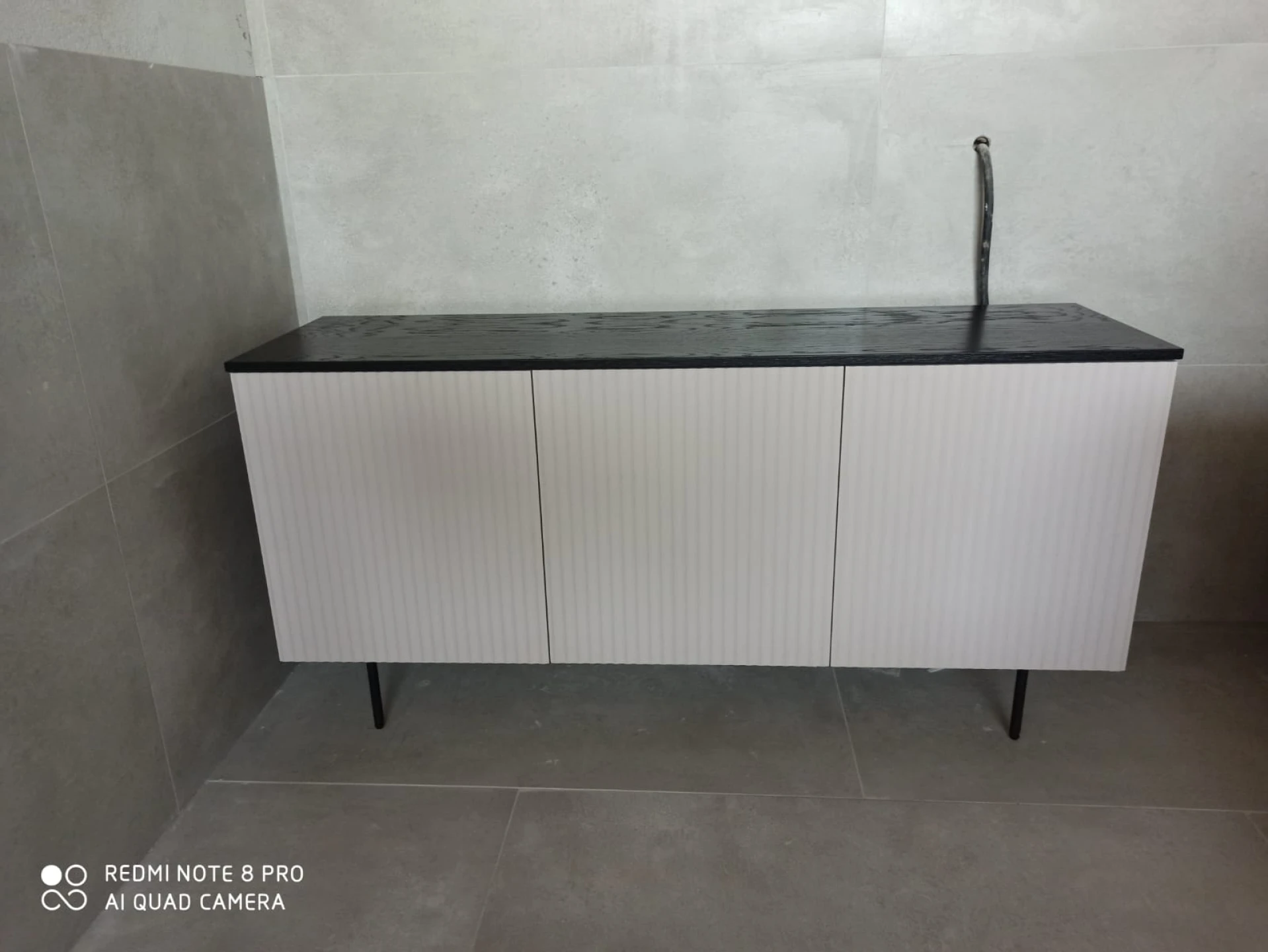 Лицевая фурнитура отсутствует, открывание фасадов по принципу нажал - открыл. Основания изделий металлические черного цвета с регулируемыми пластиковыми подпятниками.