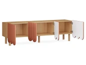 Компактные круглые ножки из бука невысоко приподнимают над полом корпус серванта. Что обеспечивает лёгкость восприятия и воздушность модели. А также простоту уборки. За дверцами скрываются 3 отсека для хранения разных предметов от техники до косметики. Сервант Mira можно использовать в качестве ТВ-консоли в гостиной, найдётся ему местечко и в спальне, рабочей или обеденной зоне. Можно дополнить органайзерами для хранения украшений, аксессуаров. Цвет фасадов может быть ярким, например, терракотовым, графитовым, или нейтральным: белым, бежевым. В любом варианте сервант Mira станет эффектным акцентом интерьера.
