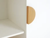 Cresco — стильная коллекция корпусной мебели для хранения вещей. Идея дизайна — нескучный минимализм. С одной стороны — практичность, спокойный внешний вид, универсальность. С другой — смелость, контрастность, оригинальность. Четкая геометрия корпуса и круглые ножки из бука, рельефная и гладкая части фасада, ассиметричное расположение ручек-полумесяцев — эти элементы отвечают за интересный внешний вид, который наполнит ваш интерьер разнообразием, ритмичностью, фактурами, акцентами.