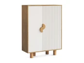 Cresco — стильная коллекция корпусной мебели для хранения вещей. Идея дизайна — нескучный минимализм. С одной стороны — практичность, спокойный внешний вид, универсальность. С другой — смелость, контрастность, оригинальность. Четкая геометрия корпуса и круглые ножки из бука, рельефная и гладкая части фасада, ассиметричное расположение ручек-полумесяцев — эти элементы отвечают за интересный внешний вид, который наполнит ваш интерьер разнообразием, ритмичностью, фактурами, акцентами.