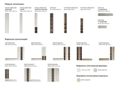 В дизайне выражена доминанта прямых форм, лаконичных линий и элегантного исполнения. Скрытые механизмы открытия дверей, естественная древесная текстура, светлые оттенки, рифление на фасадах дают интерьеру ощущение размеренности, сбалансированности, упорядоченности. Фасады без ручек поддерживают идею отказа от визуального шума, двери открываются по принципу «нажал-открыл».