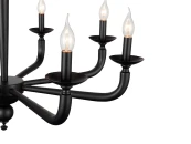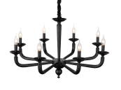 Материал основы — металл и стекло, цвет — черный. Лампочки с цоколем 8xE14 обладают общей максимальной мощностью 40W, цветовой температурой 2400-2800К. Площадь освещения составит до 16 кв. м., питание от сети 220V. Технические параметры модели: регулировка по высоте, возможность подключения диммера. Монтаж производится на металлический крюк. Габариты: высота — 54 см, диаметр — 84 см.
