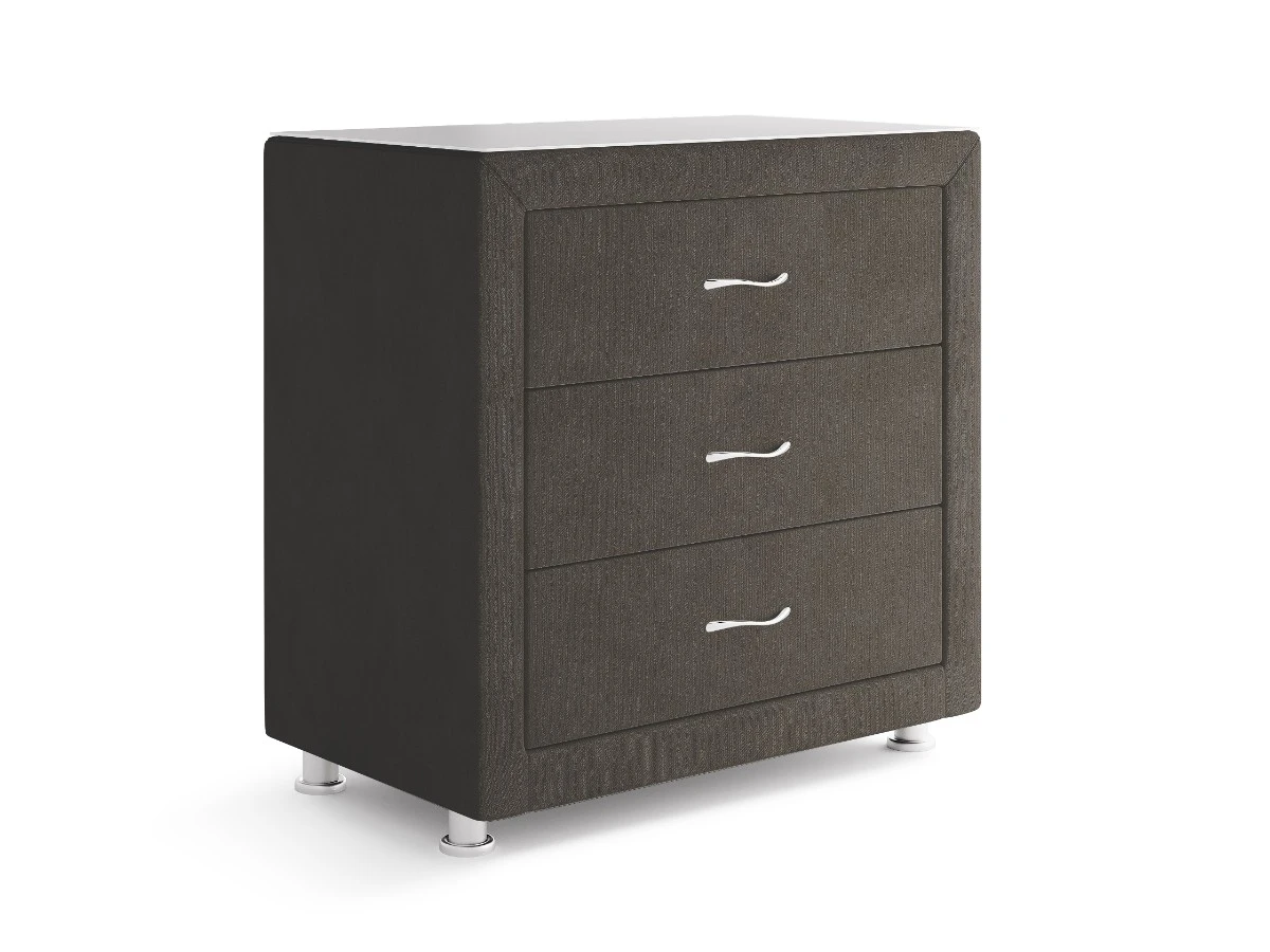 Прикроватная тумба с двумя выдвижными ящиками сочетается с любыми моделями кроватей, органично вписывается в интерьер практически любого стиля. Каркас тумбы выполнен из ДСП. Каркас тумбы и фасад ящиков покрыты обивочным материалом. Для удобства использования и продления срока эксплуатации, рекомендуется использовать стеклянную накладку. Накладка используется в качестве столешницы для тумбы и защищает ее от повреждений и загрязнений