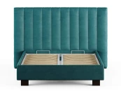 Кровать соответствует самым модным тенденциям и прекрасно впишется в современный интерьер просторной спальни. Высокая спинка с мягкими элементами выглядит эффектно. Поворотный механизм боковых элементов изголовья меняет форму, создавая более уютную атмосферу в спальне. Увеличенная прочность кровати достигается за счет металлического каркаса по периметру. Массивные ножки, выполнены из бука цвета венге. Расстояние от пола до царг способствует легкой уборке под кроватью, в том числе роботом – пылесосом. Модель укомплектована ортопедическим основанием, при желании возможно установить подъемный механизм с бельевым коробом либо трансформируемое основание Aquarius.