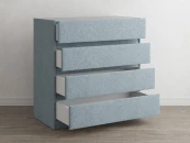 Комод Omega выполнен в современном стиле. Прямые линии, отсутствие ручек и просвета от пола, делают его универсальным, позволяя комплектовать комод с тумбами Omega и кроватями, имеющими лаконичное изголовье. Четыре выдвижных ящика с направляющими скрытого монтажа оснащены доводчиками. Задняя стенка выполнена из ДСП и обита спанбондом, это делает комод устойчивым и прочным. Комод Omega имеет скос под плинтус, это позволяет устанавливать его вплотную к стене. Можно укомплектовать стеклянной столешницей. Широкий выбор фактур и цветов исполнения.