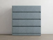 Комод Omega выполнен в современном стиле. Прямые линии, отсутствие ручек и просвета от пола, делают его универсальным, позволяя комплектовать комод с тумбами Omega и кроватями, имеющими лаконичное изголовье. Четыре выдвижных ящика с направляющими скрытого монтажа оснащены доводчиками. Задняя стенка выполнена из ДСП и обита спанбондом, это делает комод устойчивым и прочным. Комод Omega имеет скос под плинтус, это позволяет устанавливать его вплотную к стене. Можно укомплектовать стеклянной столешницей. Широкий выбор фактур и цветов исполнения.