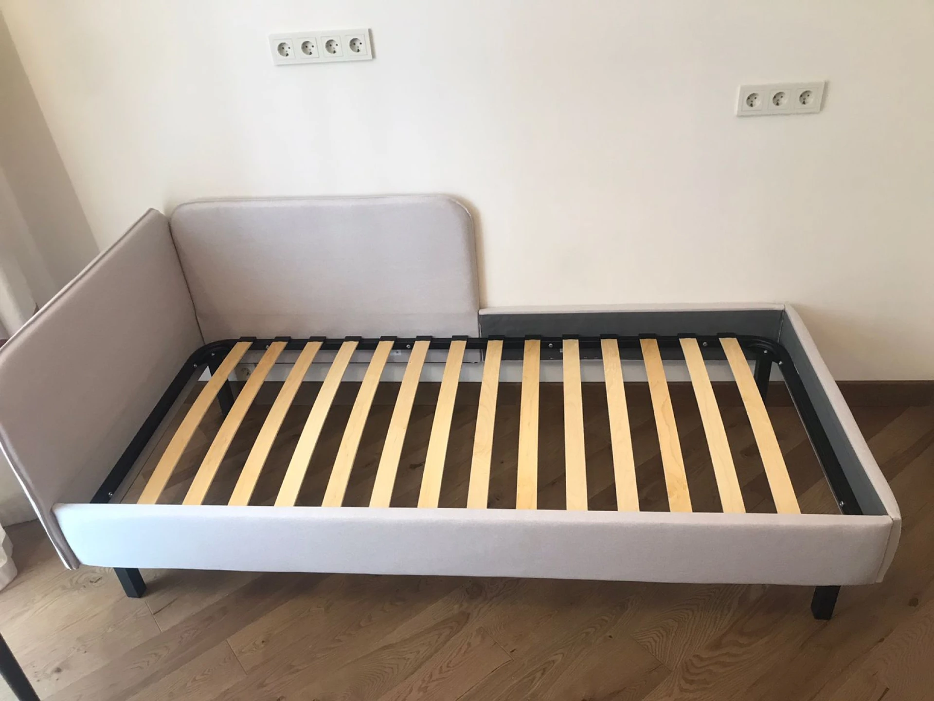 Конструктив: Прочное цельносварное основание с деревянными ламелями, позволяет выдерживать допустимые нагрузки. Основание, изголовья и царги надежно крепятся между собой, обеспечивая прочность и устойчивость кровати.