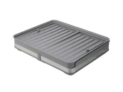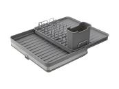 Сушилка Atle – компактная, но в то же время вместительная модель с раздвижной конструкцией, в которой предусмотрены отделения для посуды и кухонных принадлежностей. Удобное размещение и надежную фиксацию тарелок и других емкостей обеспечивают железные разделители. Поддон выполнен из практичного полипропилена, который легко моется. Стальные элементы на корпусе имеют специальное покрытие против отпечатков пальцев. Настольную сушилку можно размещать в любом месте и для ее установки не требуется делать отверстия в стене. Для хорошей устойчивости в раздвижном состоянии предусмотрены специальные ножки, расположенные в нижней части сушилки, которые выдвигаются одним движением руки. Материалы: полипропилен, сталь, железо. Размеры в сложенном виде: 36,3х30,2х16,8 см. Размеры в разложенном виде: 36,3х52х16,8 см. Цвет: серый. Сушилку можно очищать от загрязнений в теплой мыльной воде с помощью мягкой губки. Запрещается использование агрессивной бытовой химии и абразивных материалов.