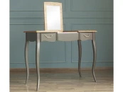 Туалетный стол Leontina это незаменимая вещь для людей, любящих макияж и удобство в одном флаконе. Солидный глубокий черный цвет это блестящее сочетание изысканности и смелых решений. Взгляните по-новому на привычные вещи! Стол Leontina изготавливается вручную из массива березы, столешница из массива ясеня. Ящики и некоторые вкладки из березовой фанеры. Фурнитура - латунь. Изделие покрывается итальянскими лакокрасочными материалами Sayerlack. Данный стол идеально подходит для оформления дамского будуара, где приятно расположиться для наведения марафета и макияжа. Помимо того, если Вы закроете крышку, то получите полноценный стол для письма или работы, принадлежности для которых Вы сможете поместить в двух выдвижных ящиках.