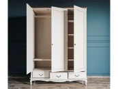 Трехстворчатый шкаф Leontina" с ящиками определенно станет главным функциональным предметов Вашей спальной комнаты, также он наполнит комнату невероятным шармом, присущем стилю Прованс, ведь он поистине безупречен и элегантен. Настоящее произведение искусства! Шкаф "Leontina" изготавливается вручную из массива березы, столешница из массива ясеня. Некоторые вкладки из березовой фанеры. Фурнитура - латунь. Изделие покрывается итальянскими лакокрасочными материалами Sayerlack. Данный шкаф, благодаря наличию ящиков, является усиленной версией решения всех Ваших проблем с размещением вещей разных категорий и габаритов. Он достаточно универсален и прекрасно впишется практически в любой интерьер, сделав элегантный акцент в привычной обстановке. Удивите близких, знакомых и друзей этим поистине уникальным предметом мебели, который, к тому же, несет в себе практичность и функциональность."
