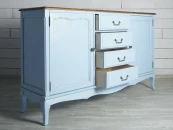 Комод Leontina окружит Вас неповторимым элегантным шармом. Утонченный голубой цвет это блестящее сочетание французской изысканности, а столешница из массива ясеня подарит Вам чувство естественности и комфорта. Взгляните по-новому на привычные вещи!Комод Leontina изготавливается вручную из массива березы, столешница из массива ясеня. Ящики и некоторые вкладки из березовой фанеры. Фурнитура - латунь. Изделие покрывается итальянскими лакокрасочными материалами Sayerlack.Данный комод достаточно универсален: его можно использовать как в спальной комнате для хранения множества вещей, так и в гостиной зоне, ведь на него можно поместить любимые книги и расположить TV. Комод не только богат функционально, но и эстетически красив: фигурная столешница, гнутые ножки кабриоль и патина (по желанию) по истине очаровывают!