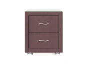 Прикроватная тумба с двумя выдвижными ящиками сочетается с любыми моделями кроватей, органично вписывается в интерьер практически любого стиля. Каркас тумбы выполнен из ДСП. Каркас тумбы и фасад ящиков покрыты обивочным материалом.  Для удобства использования и продления срока эксплуатации, рекомендуется использовать стеклянную накладку. Накладка используется в качестве столешницы для тумбы и защищает ее от повреждений и загрязнений