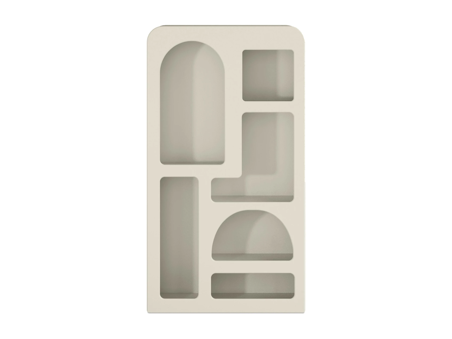 На фасаде имеются вырезы различных размеров и конфигураций. За каждым вырезом в фасаде располагается отделение.