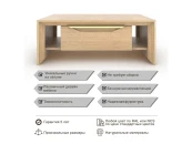 Столик имеет зеркальный двухсторонний дизайн, сквозные открытые полки и два выдвижных ящика плавного хода с доводчиком.