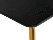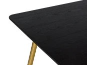 Вместительный и широкий стол Dino подойдет для любого случая. Будь то обыденный завтрак с семьей перед поездкой на работу или романтический ужин со своей второй половинкой, когда на столе стоят не только блюда, но и ваза с красивым букетом роз, зажженные свечи. А может быть вы решите пригласить друзей в гости на уютные посиделки за какой-нибудь интересной настольной игрой. Стол спокойно вмещает 4-6 человек. Тонкая столешница и ножки придают легкость помещению. Вы забудете об ощущении тесноты и захламленности. Наоборот — придет приятное чувство, будто стало легче дышать. Столешница из МДФ покрыта 2-мя вариантами шпона: ореха или черного дуба. Стол обработан специальным материалом — меламином. Он обладает высокой устойчивостью к царапинам, сколам и вмятинам. Каркас и ножки стола изготовлены из металла и покрашены в матовый золотистый цвет, что добавит капельку солнца в вашу комнату.
