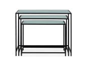 Каркас металлический с черным матовым покрытием. Стеклянная столешница выполнена из прозрачного рифленого стекла. Столешница укладывается сверху на резиновые демпферы, расположенные в углах каркаса.