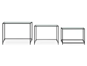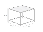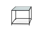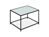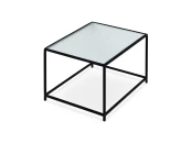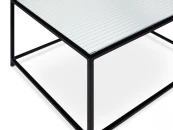 Каркас металлический с черным матовым покрытием. Стеклянная столешница выполнена из прозрачного рифленого стекла. Столешница укладывается сверху на резиновые демпферы, расположенные в углах каркаса.