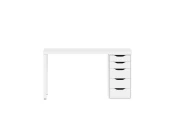 Стол письменный Ингар 1/5Т, 120x75x55, цвет Белый. Стол комплектуется столешницей, двумя металлическими ножками и тумбой под столешницу с пятью выдвижными ящиками. Конструкция столешницы - тамбурат (рамка из ДСП и HDF с сотовым заполнением) - популярная современная технология, активно внедряемая крупнейшими производителями для изготовления мебели по скандинавским стандартам. Ножки - крашенный металл в белый цвет. Опоры ножек регулируемые. Конструкция тумб стола: ДСП, поверхность, декорированная бумага, окраска УФ материалами. Фасады ящиков без ручек, с вырезами для удобного выдвижения. Ящики переменной высоты позволяют использовать их для хранения разнообразных предметов.Преимущества: облегченная конструкция (тамбурат), высокая прочность, устойчивость, простая, быстрая сборка, эстетичный внешний вид. Гарантийный срок для жилых и общественных помещений 24 месяца.