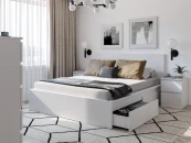 Кровать серии Варма Сэнг шириной 1600 мм. Лаконичный дизайн и облегченная конструкция изголовья/изножья, выполеннных из тамбурата. Возможность дооснастить кровать удобными выкатными ящиками Сэнгбокс (размещение ящиков возможно с любой стороны кровати).