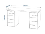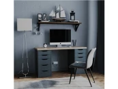 Стол письменный Ингар 2/55, 140x75x55, цвет Дуб беленый/серо-бирюзовый. Стол комплектуется столешницей и двумя тумбами под столешницу с пятью выдвижными ящиками в каждой тумбе. Конструкция столешницы - тамбурат (рамка из ДСП и HDF с сотовым заполнением) - популярная современная технология, активно внедряемая крупнейшими производителями для изготовления мебели по скандинавским стандартам. Конструкция тумб стола: ДСП, поверхность, декорированная бумага, окраска УФ материалами. Фасады ящиков без ручек, с вырезами для удобного выдвижения. Ящики переменной высоты позволяют использовать их для хранения разнообразных предметов. Преимущества: облегченная конструкция (тамбурат). высокая прочность, устойчивость. простая, быстрая сборка. эстетичный внешний вид. Гарантийный срок для жилых и общественных помещений 24 месяца.