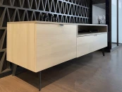 Используются скрытые направляющие с доводчиком, что обеспечивает плавное и бесшумное закрывание, а так же отсутствие видимых частей механизмов на боковинах ящиков. Система полного выдвижения обеспечивает удобный доступ к внутреннему пространству тумбы.