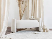 Банкетка выполнена в современном стиле, конструкция простая, лаконичная, без сложных элементов и каретной стяжки, так что Teano будет прекрасно смотреться и в современном минималистичном стиле, и в сканди, и в спальне, оформленной в соответствии с канонами мемфис или мидсенчури.