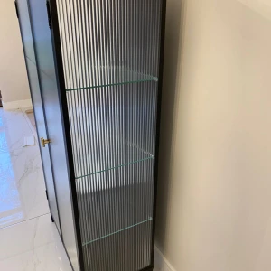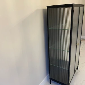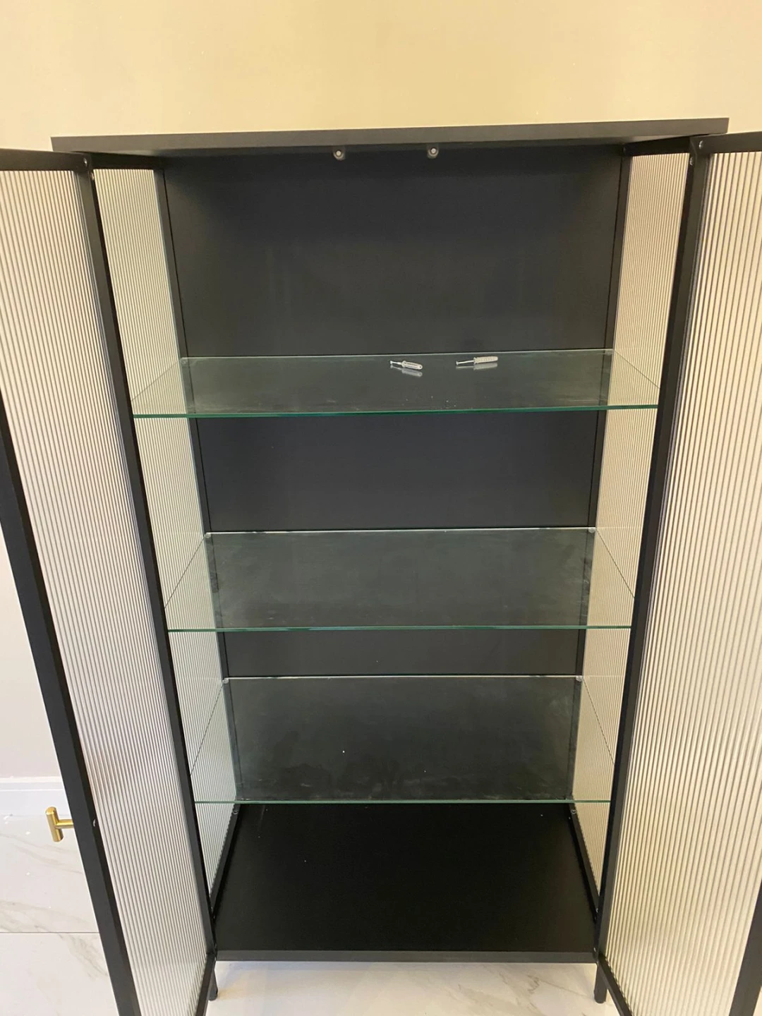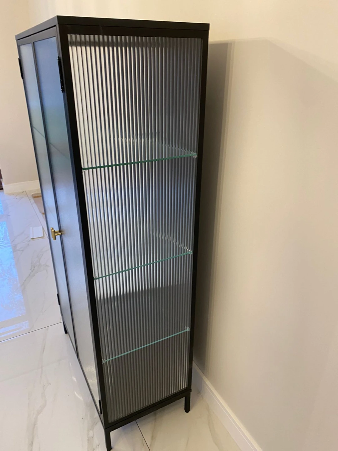 Витрина The One сочетает в себе элегантный дизайн с большим количеством функциональных возможностей. «Прозрачная» архитектура — вдохновение винтажными буфетами и витринами 50-60-х годов. Черный алюминевый профиль добавляет эстетики лофта и гранжа. На фасадах и боковых рамах — рифленое стекло, позволяющее организовать «музейное» хранение любых вещей. Используйте его в качестве фокусной точки в столовой для «выставки» необычной посуды, в гостиной для коллекции редких изданий или в ванной для парфюмерии и косметики. Универсальный характер витрины The One подходит для оформления бьюти и лаундж-зон, творческих мастерских и креативных пространств. Хорошо работает как самостоятельный предмет интерьера, так и в паре с сервантом The One.