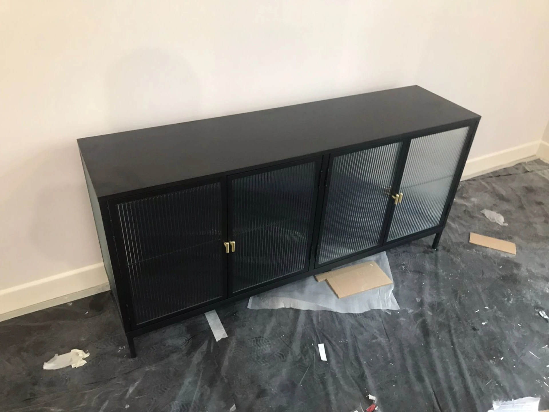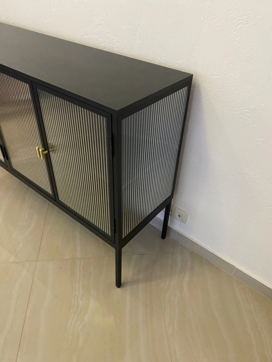 Основание из стальной трубы черного матового цвета с регулируемыми подпятниками, Предусмотрено крепление к стене (крепежи в комплекте).