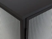 Концепция дизайна серванта The One — игра противоположностей с эклектической основой. Каркас из алюминиевого профиля контрастирует со стеклянной поверхностью. Этот союз материалов придаёт традиционному предмету мебели свежий и небанальный внешний вид. Взаимодействие стильных противоречий также выражено в лаконичной архитектуре и выразительном чёрным цвете. Рифлёное стекло создает ощущение тайны и интриги. Сервант идеально подходит для вещей, которые не должны быть на первом плане, но про которые вы не хотите забывать. Двери закрываются мягко и бесшумно благодаря магнитным фиксаторам. Сервант The One станет гармоничным элементом лофтового интерьера, неоклассики, арт-деко, минимализма.
