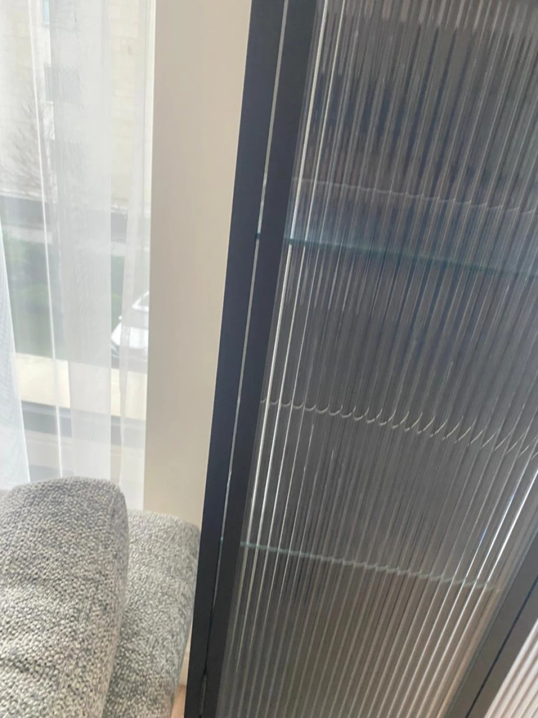 Фасады и боковые рамки - стекло рифленое Moru, толщиной 4мм.