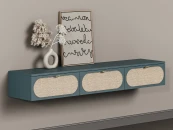 Тумба под телевизор подвесная с ротангом tioTeo Vishera морского цвета NCS 6010 В30G
