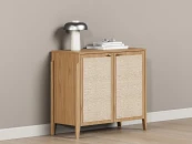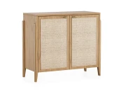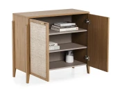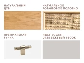 Комод с ротангом tioTeo Vishera бежевого цвета из дуба Наружный корпус и фасады – шпон дуба, матовый лак Внутренний корпус – ЛДСП Egger Ножки - массив дуба Фурнитура с доводчиками Ручка – алюминий, отделка золото глянец, производство Европа