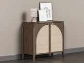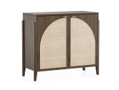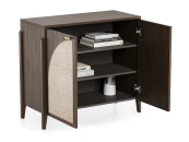 Комод с ротангом tioTeo Vishera коричневого цвета из дуба Наружный корпус и фасады – шпон дуба, матовый лак Внутренний корпус – ЛДСП Egger Ножки - массив дуба Фурнитура с доводчиками Ручка – алюминий, отделка золото глянец, производство Европа
