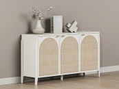 Комод с ротангом tioTeo Vishera белого цвета RAL 9001 Наружный корпус и фасады – МДФ, матовая итальянская эмаль Внутренний корпус – ЛДСП Egger Ножки - массив бука Фурнитура с доводчиками Ручка – алюминий, отделка золото глянец, производство Европа