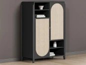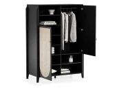 Шкаф платяной с ротангом tioTeo Vishera черного цвета RAL 9017 Наружный корпус и фасады – МДФ, матовая итальянская эмаль Внутренний корпус – ЛДСП Egger Ножки - массив бука Фурнитура с доводчиками Ручка – алюминий, отделка золото глянец, производство Европа