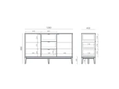 Данная модель оснащена двумя просторными секциями с полками по бокам и тремя выдвижными ящиками по центру. Комод станет удачной находкой для любителей утонченного стиля и функциональной мебели.