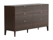 Комод с шестью выдвижными ящиками будет незаменим для хранения вещей в спальне и других помещениях. Прочные и вместительные ящики из ЛДСП, которые выдерживают вес до 25 кг помогут использовать пространство максимально эффективно, а фасады с объемной гравировкой и изящные ножки из массива дуба непременно украсят ваш интерьер.