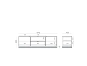 Тумба под ТВ с увеличенной длиной, станет украшением просторной гостиной и позволит организовать комфортное хранение вещей. Внутреннее наполнение тумбы состоит из двух выдвижных ящиков и двух боковых секций с полками, положение которых можно регулировать.