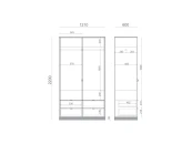 Шкаф позволяет комфортно разложить личные вещи на полках и в ящиках, а также повесить их на вешалку. Конструкция шкафа предусматривает две секции со штангами и полками, которые скрыты за фасадом и четыре вместительных ящика. При необходимости вы можете регулировать высоту полок.