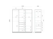 Один из самых вместительных шкафов в коллекции Timeless. Конструкция шкафа предусматривает две секции со штангами и полками, а также одну секцию по середине, которая состоит из полок, скрытых за фасадом, и ящиков. Кроме того, предусмотрены отверстия для регулировки высоты полок и штанг.