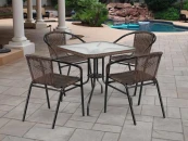 Стол: L70xW70xH70 см. Стекло: закаленное- 5 мм. Труба: сталь D25 с полимерным покрытием. Стол имеет отверствие для зонта. Столешница по периметру искусственный ротанг. Стул: W54хD58xH74 см. Каркас: труба сталь D25.Материал: искусственный ротанг. Цвет: brown, капучино Объем и вес комплекта: 0,42м3,22,5кг.