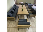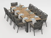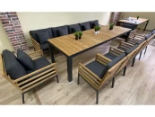 Материалы: каркас - всесезонный алюминий с порошковым напыление, столешница - тик, раздвижная секция 80см